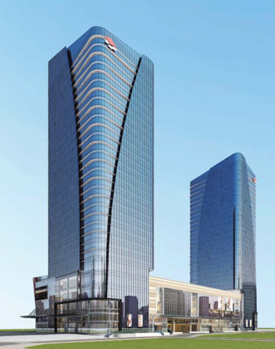 重庆天和国际中心项目位于重庆两江新区江北观音桥CBD步行街核心地段,项目总占地面积9451平方米、建筑面积170917.05平方米,幕墙面积55933平方米,建筑高度283.5米,采用了单元式幕墙、框架式玻璃幕墙、石材幕墙、雨篷等幕墙系统。