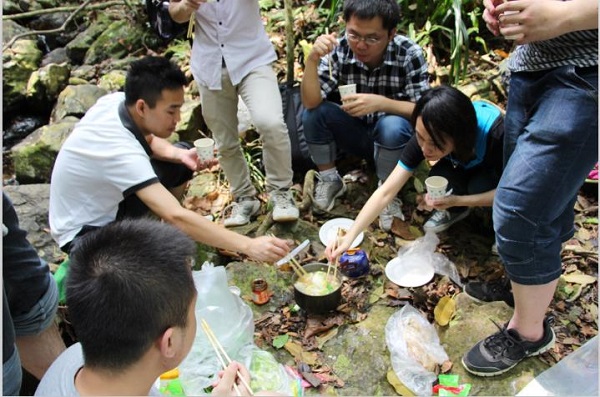 4月19日,方大集团举办了四月员工生日月活动,此次员工生日月活动选址在惠州与深圳交界处名为情人谷的地方,四月生日月员工共有13人参加了此次活动。生日月员工一行穿行过金龟村之后,到达活动目的地情人谷。大家在领队的带领下自制火锅,享用过野外火锅后,继续沿着溪水溯溪而行,全程共徒步行走了17.4公里。
