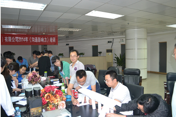第一天的课程为《沟通影响力》,共7个课时,江西新材中高层领导及部分业务骨干共计23人参与了本次培训。本次培训课程的主要内容包括信任模式的建立、冰山理论、商谈六步骤、人际沟通风格的分类、辨识以及应对。吕铮老师通过演讲、视频片段等方式为大家很好的诠释了人际沟通的理念知识,同时通过小组讨论、做游戏及角色扮演等方式让大家很好的模拟了课程的实战效果。