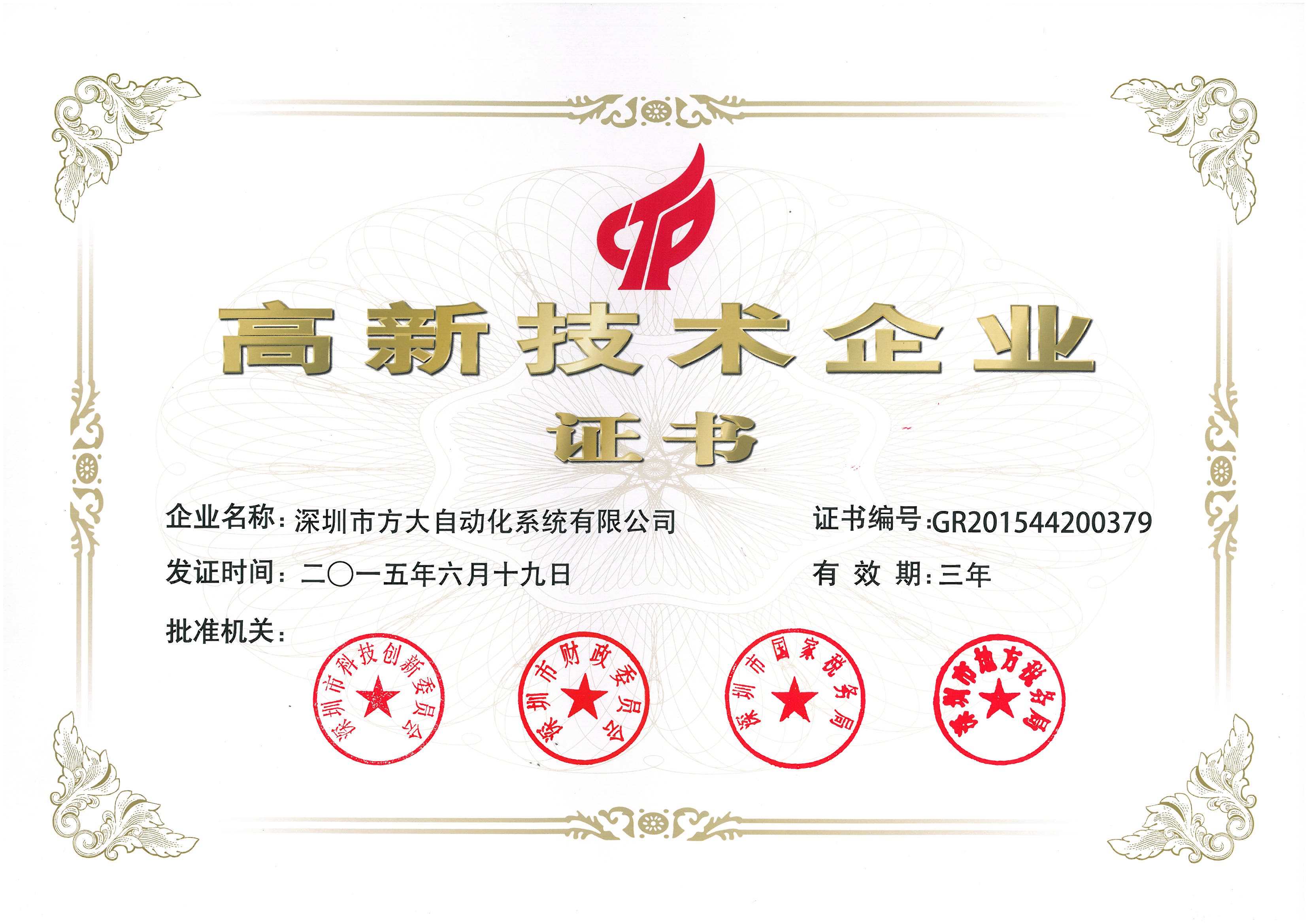 近期,根据科技部、财政部、国家税务总局《高新技术企业认定管理办法》和《高新技术企业认定管理工作指引》的规定,经企业申报、地方初审、专家审查、公示等严格的申报程序,华亿平台全资子公司深圳市方大建科集团有限公司、深圳市方大自动化系统有限公司被认定为国家高新技术企业,成为深圳市2015年第一批国家高新技术企业。