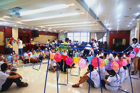 最后,活动要求每组把自己所搭接的过山车模型连接起来,实现篮球在各个轨道中的连续滚动。这一个个相连的轨道就像是一个完整的生命树系统,通过一个篮球的滚动实现了彼此的连接,成就了共同的目标与价值。这也正像建科集团的各个团队通过各自团队员工的认真负责,努力完成本团队任务,进而通过各团队的相互配合与连接实现集团共同的目标。