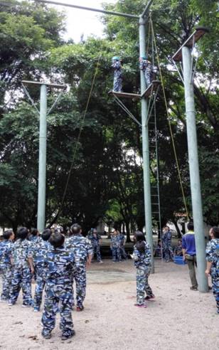 本次户外拓展培训活动将参训人员随机分成三个小组,并设置了小组“PK”项目和小组协作项目。在小组“PK”项目中,共有动感飞球、沟通巴别塔、决战沙场、风雨人生路、极速六十秒、高空断桥、七巧板七个活动项目,活动中各小组成员同心协力,充分发挥团队智慧积极完成任务,每轮项目结束后,各小组成员交流体验感受,分享比赛的感悟与收获。虽然在活动中各小组存在竞争关系,但更多是让参与者在寓教于乐。在最后一个小组协作项目“穿越黑洞”中,三个组合并成“方大队”,共同协作去到达终点。在近一个小时高强度的体能及精力消耗后,“方大队”完成了这个艰难而有富有挑战的任务,出色的结束了两天一夜的拓展活动。虽然每一个人都筋疲力尽,但眼神中却充满了力量,这一刻因自己是方大人而倍感骄傲。