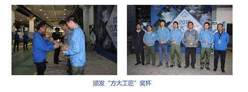 在评委们严谨公正的考核下,随着紧张而激烈的比赛的结束,各比赛工种的评比结果也陆续出炉。东莞公司的谢辉、蒋亚峰、党要飞、谢昌元分别获得下料、组框、打胶、电焊的第一名,江西新材的张文彪、李芳根分别获得打磨、喷涂的第一名,自动化公司的肖五生获得组装三项的第一名。在决赛总结大会上,这7位选手被授予2016年“方大工匠”称号。不仅如此,他们还将分别获得1000元现金奖励、年底加薪及接受集团公司专访等福利待遇。