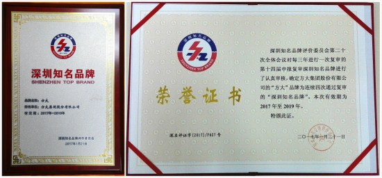 4月20日,在第十四届深圳知名品牌成果发布会上,华亿平台“方大”品牌被授予“深圳知名品牌”荣誉称号,这是“方大”品牌连续第四次获此殊荣。