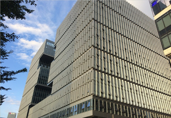 深圳阿里巴巴大厦的幕墙设计展现了卓越的商务美学,外形呈积木状,宛如漂浮在深圳湾上空的“云”。为了充分呈现出建筑的现代感与科技感,方大建科在幕墙的设计和施工上都精益求精。在材料使用方面,利用金属及玻璃来体现建筑的通透和现代质感;在幕墙系统方面,主要使用锯齿状单元式幕墙系统,通过“L”型锯齿状单元板块来体现建筑的几何效果。