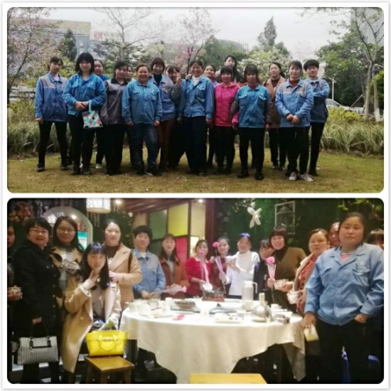在东莞,因生产较忙,女员工们放弃休息,自愿在岗工作。东莞公司为女员工们准备的精致的礼物,晚上以一顿丰盛的晚餐庆祝此次“女神节”活动。