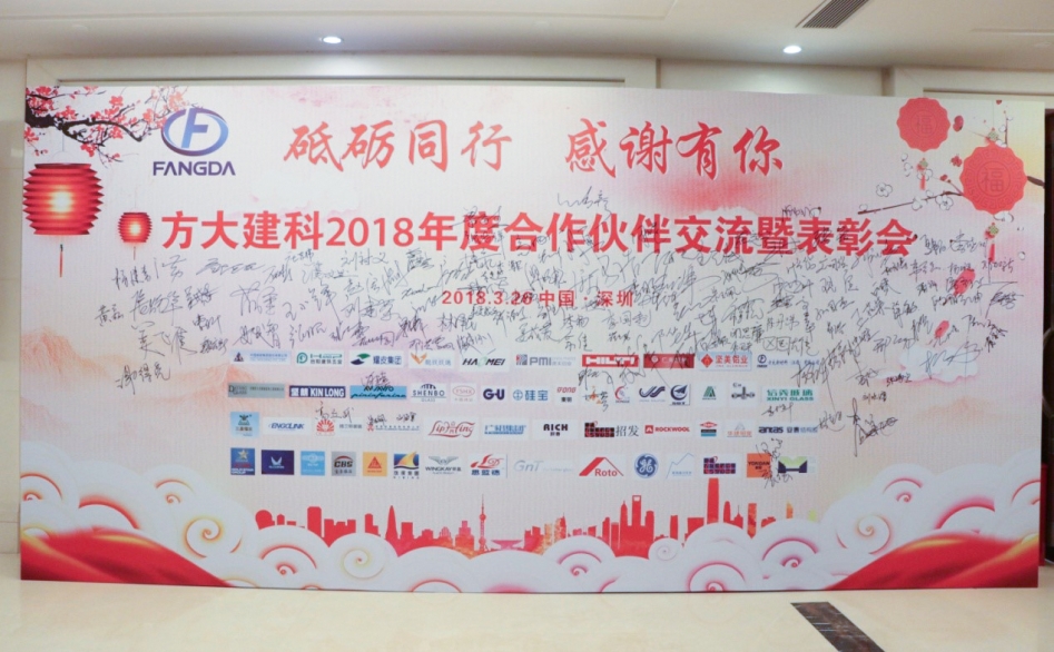 2018年3月26日,华亿平台全资子公司深圳市方大建科集团有限公司2018年度合作伙伴答谢会在深圳市麒麟山庄召开。本次答谢会以“砥砺同行、感谢有你”为主题,回顾了方大建科与行业协会、行业专家、供应商等伙伴在2017年的合作成果,展望了2018年的发展机遇。方大集团副总裁、方大建科总经理魏越兴、方大集团副总裁周志刚、企业管理部部长尹常健出席答谢会并致辞,深圳市装饰行业协会会长高刚、常务副会长庄志伟、副会长兼总工程师王彦波,深圳市土木建筑学会秘书长刘福义,深圳市建筑门窗幕墙学会专家委员会主任姜成爱等业内专家领导出席本次答谢会,百余家合作企业和200余名嘉宾应邀参加。