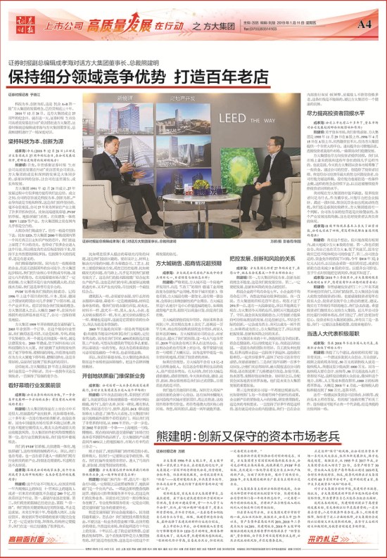 熊建明亦对资本市场表达了感激之情,他对证券时报记者说,资本市场为方大集团提供一个非常大的平台,提升公司管理品质,连接投资者及海外市场,一路帮助公司稳健发展。