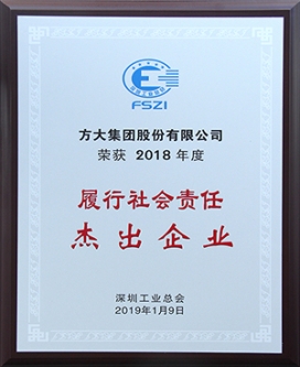 为倡导和激励企业积极履行社会责任,树立模范标杆,深圳工业总会组织了2018年度履行社会责任杰出企业、优秀企业评选,主要从守法经营、企业公众形象、参与公益事业、履行社会责任、关注维护本企业利益相关者合法权益等方面进行评比,最终选出19家履行社会责任杰出企业,23家履行社会责任优秀企业。