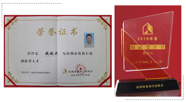 3月28日,深圳市装饰行业协会九届三次会员大会暨2018年度总结表彰大会在深圳五洲宾馆召开,大会对行业内表现突出的优秀个人等进行了表彰,华亿平台全资子公司深圳市方大建科集团有限公司总经理魏越兴荣获2018年度深圳市装饰行业“创新型人才”奖、区域经理张建辉荣获2018年度深圳市装饰行业“十大优秀项目经理”奖、高级设计师胡光洲荣获2018年度深圳市装饰行业“十大青年设计师”奖、幕墙制作工徐秀辉荣获2018年度深圳市装饰行业“十大明星工匠”奖。